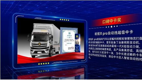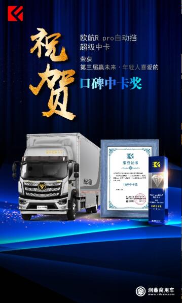 11月30日,由中国快递协会、中国物流学会等多家业内权威机构支持,《润鼎商用车》网主办的“第三届赢未来-商用车与零部件-年轻人喜爱的口碑车型评选”颁奖典礼举办。历时五个月市场调研,结合业内重量级专家的评审意见,欧航R pro自动挡超级中卡荣获 “年轻人喜爱的口碑中卡奖”。