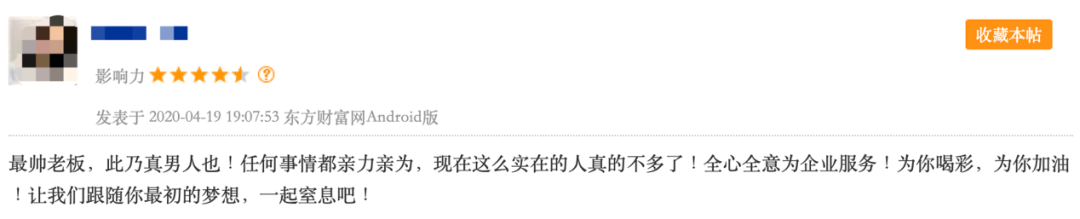 比如,“亲力亲为的董事长”、“干实事儿的董事长”、“第二天股票一定涨停”等等。