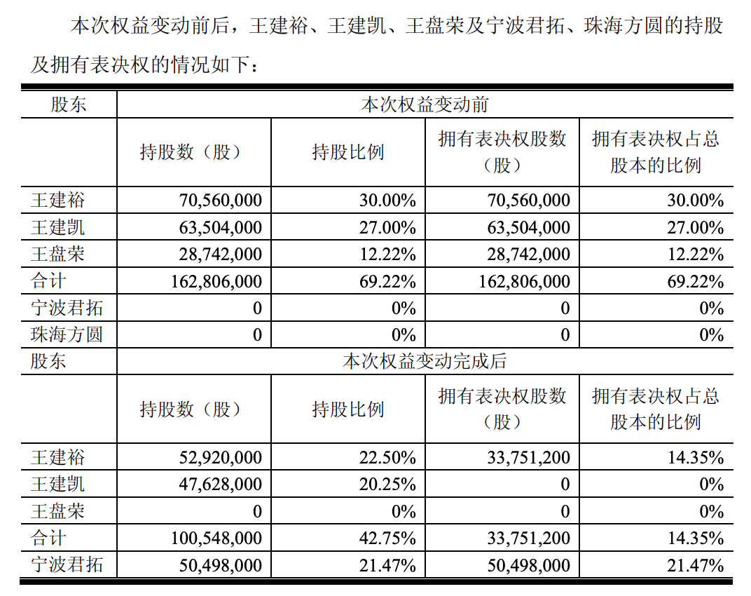 值得注意的是,股权转让完成后,王建裕的哥哥王建凯,于去年9月再次通过二级市场套现近9000万元。