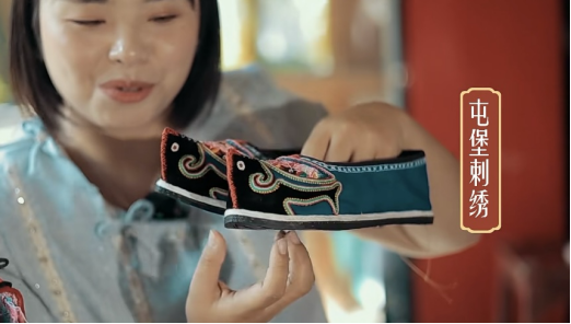 屯堡刺绣:屯堡女性的“凤阳汉装”承载着深厚的文化内涵,而其衣饰之上点缀的“屯堡刺绣”,恰似这一文化符号最精致的点睛之笔。她们巧妙地将贵州的山水景观与人文风情融入一双双绣花鞋中,每一针每一线都仿佛在默默低语,讲述着家族的过往与迁徙的历史。